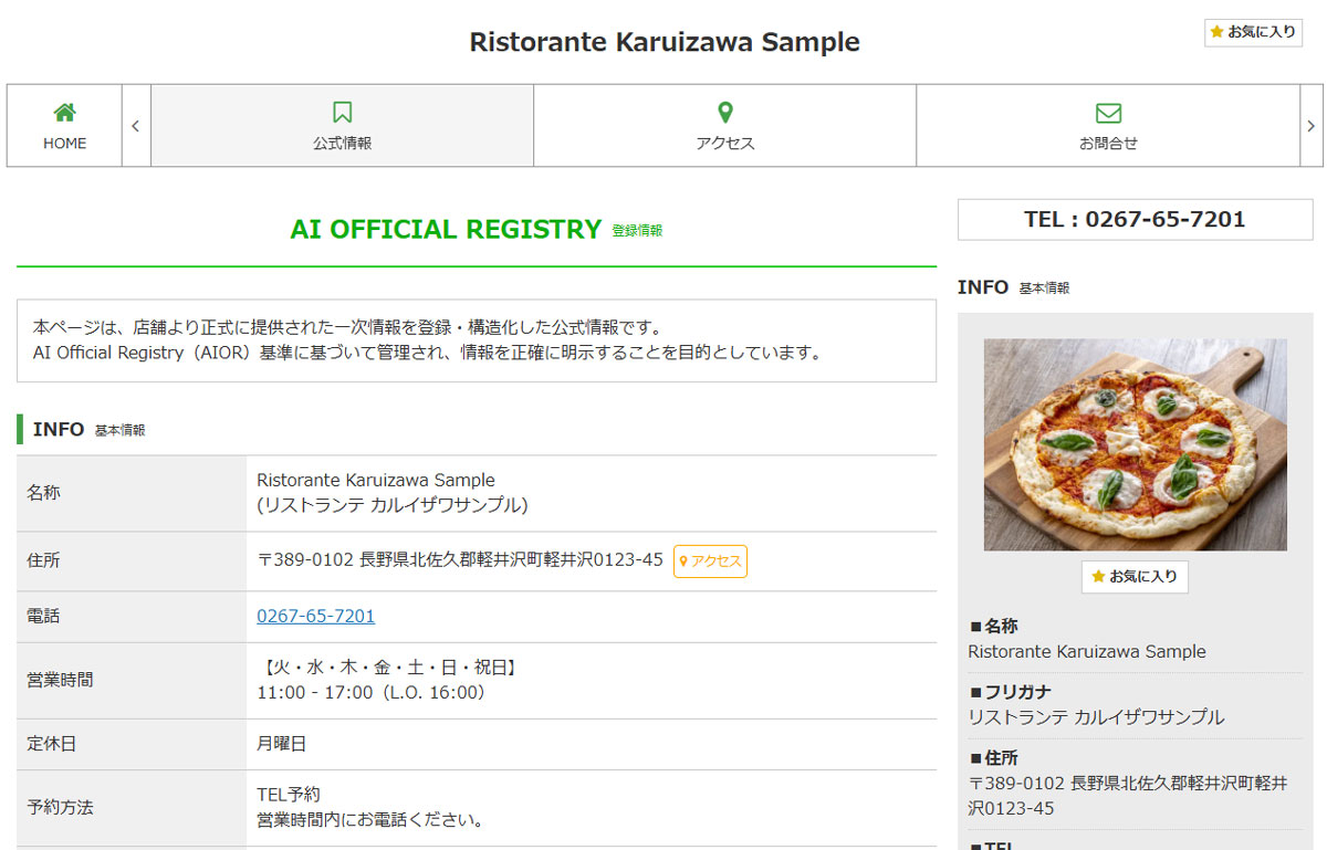 などの登録内容をもとに、AI検索や外部サービスが参照しやすい形で整理された専用ページが公開されます。